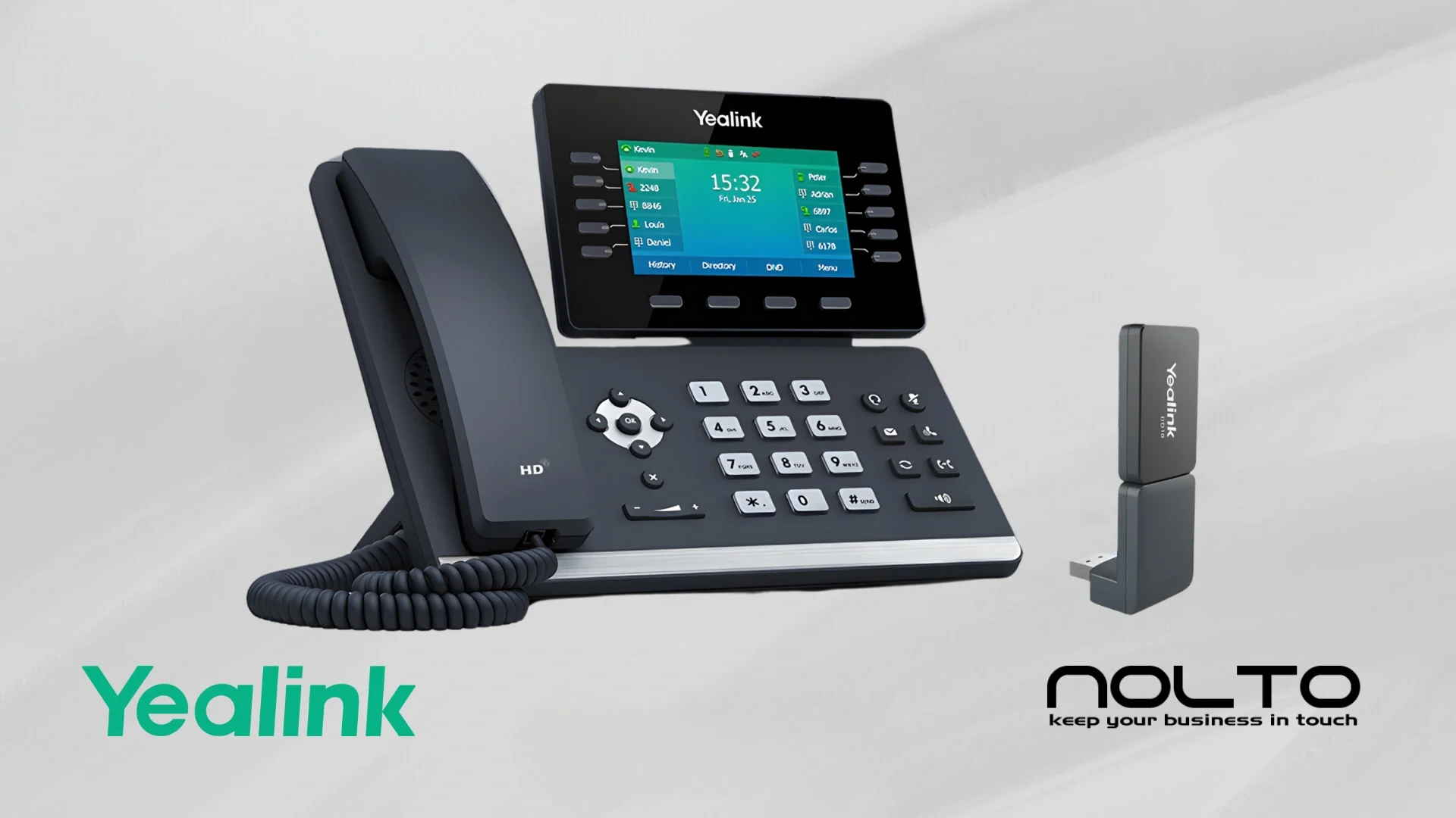Yealink DECT Masaüstü Telefonu (DD Telefon), Yealink masa telefonu T54W ve USB DECT dongle DD10K‘dan oluşur. Yealink DECT baz W60B ile eşleştirildiğinde, DD Phone, DECT sistemi ile bir ahize olarak aynı anda çalışabilir.